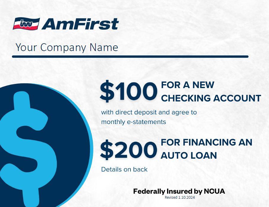 We would love to attend your next benefits / wellness fair! We can also schedule a time for an AmFirst representative to set up in your break room or conference room.